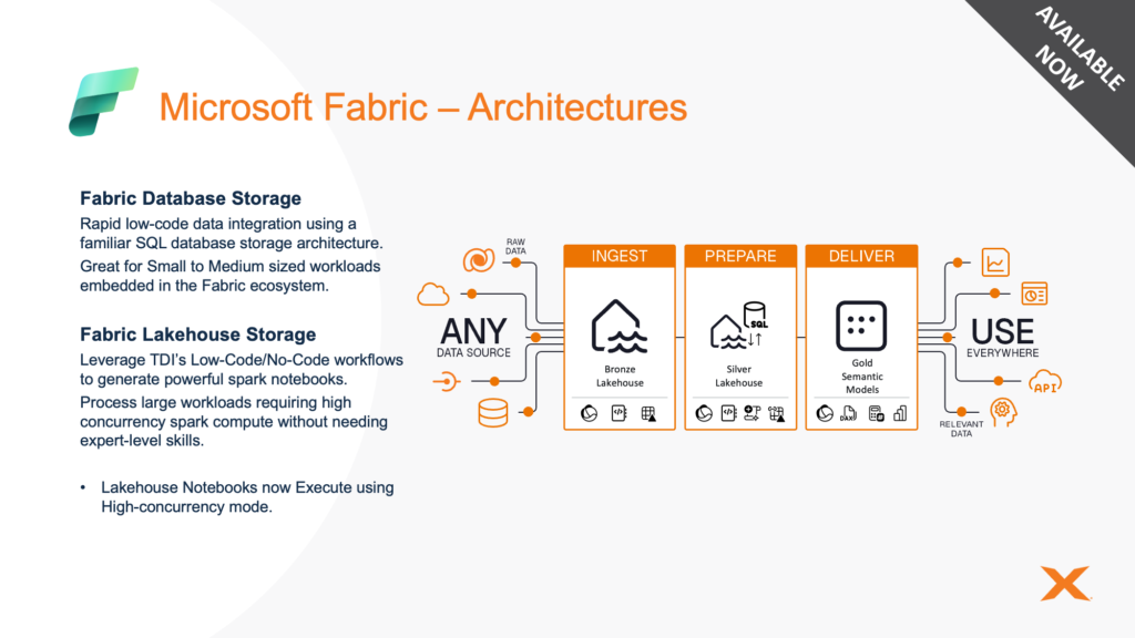 14 oktober 2025 TimeXtender Delivers Full Microsoft Fabric Support Deel dit bericht As a proud partner of TimeXtender, Bitmetric is excited to share the transformative enhancements in their October 2025 release. TimeXtender’s latest update completes their journey to full Microsoft Fabric integration and introduces powerful new features across the Holistic Data Suite. The Main Event: Comprehensive, End to End Microsoft Fabric Integration This release completes TimeXtender’s phased journey to deliver full support for Microsoft Fabric, advancing their integration from limited preview to a feature complete public preview. Full Feature Parity for Fabric Lakehouse You can now migrate existing TimeXtender solutions directly to Fabric Lakehouse without rebuilding logic. The system automatically generates Spark notebooks from no code models, translating transformations into production ready code.Support now includes field validations, custom transformations, Type 2 slowly changing dimensions, custom hash fields, junk dimensions, and more. Power BI Direct Lake Mode Support The release adds support for Direct Lake mode in Power BI. Users can query large datasets directly from Delta tables in OneLake. This enables near real time analytics without data duplication or scheduling overhead. Greater Architectural Flexibility and Security Creation of notebook ready Spark views or persistent SQL endpoint views for downstream tools. Automatic shortcuts in OneLake when no transformation is needed, reducing unnecessary data movement. Support for service principal authentication to avoid prior reliance on non MFA users and improve security in automated deployments. Enhancements Across the Holistic Data Suite Beyond the Fabric integration, TimeXtender’s release brings performance, usability, and connectivity improvements across its Data Integration, Data Source Providers, Orchestration, and Data Quality modules. Data Integration v7142.1 The logging system for Ingest instances is revamped. It now uses a file based W3C Extended Log File Format. Administrators can configure retention and file sizes to manage storage. Data Source Providers (r. 2025 10 06) Incremental loading is now supported for the generic REST connector. This lowers API call counts, reduces data transfer volume, and speeds execution. HubSpot and Exact Online connectors also benefit from this enhancement. Orchestration and Data Quality v25.2 You can now set automatic retry counts for failed packages. A new Continuous scheduling type allows workflows to restart immediately after completion. The start page is redesigned, and error messages have been clarified for a better user experience. What This Means for Our Customers This October release is a milestone in bridging modern data architecture with ease, automation, and flexibility. Key benefits: Faster adoption of Microsoft Fabric with automatic Spark code generation, reducing the need for specialist engineers. Lower operational costs through incremental loading, reduced data duplication, and performance optimizations. Future proof infrastructure as TimeXtender’s metadata driven architecture lets your business logic stay consistent across storage backends such as Fabric, Azure, SQL Server, Snowflake, AWS, or on premises. Read more here. Let’s help you leverage these enhancements. We are ready to assist with migration paths, deployment, and maximizing the benefits of full Fabric support. If you would like a walkthrough or help aligning this with your architecture, let us know! Let’s connect! Contact us Got questions? We’re here to help. Reach out and let’s get going. Let’s chat Prefer a callback? No problem! Let us know and we’ll get back to you. Try it out Take it for a spin. Get started with a demo or free trial. New Release TimeXtender Hoe kunnen we je ondersteunen? Barry beschikt over meer dan 20 jaar ervaring als architect, developer, trainer en auteur op het gebied van Data & Analytics. Hij is bereid om je te helpen met al je vragen. Bel ons Mail ons 9 oktober 2025 Data Flow: New Pivot processor and enhanced processors (Dates, Window) Qlik Cloud introduces a new Pivot processor in Data Flow for no-code row-to-column pivoting. The Window processor adds operations like Count Distinct and Concatenate, while the Dates processor enhances date creation with constant values. These updates streamline data manipulation and improve user experience. New Release Qlik 7 oktober 2025 Validation rules suggestions in Qlik Talend Cloud Qlik Talend Cloud now offers validation rules suggestions, automatically proposing rules based on your dataset, including multi-field rules. This feature aids in swift rule creation. Not available in Qlik Cloud Government or DoD. New Release Qlik 7 oktober 2025 Enhanced datetime precision control Qlik Cloud now offers enhanced datetime precision control in data integration projects, allowing users to view and adjust datetime data type precision. The dates processor in transformation flow processors also provides configuration options for datetime precision, offering increased flexibility. New Release Qlik